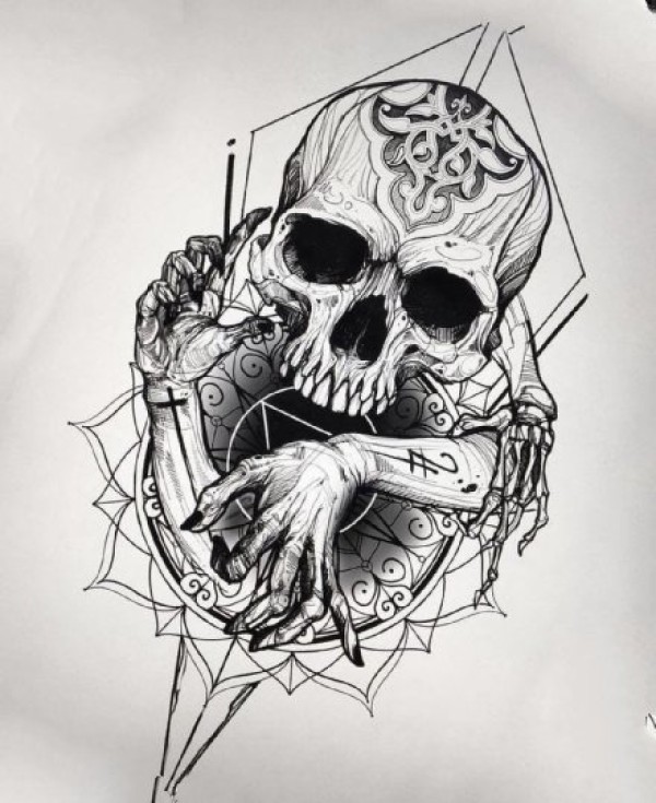 33组个性点刺骷髅头纹身素材手稿