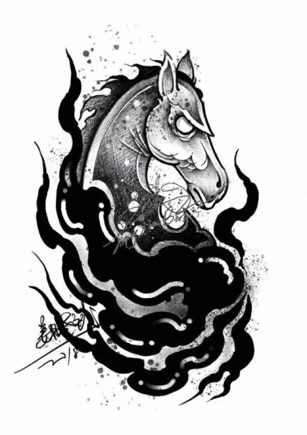 半甲唐狮手稿 传统的9款唐狮主题半甲纹身手稿图片