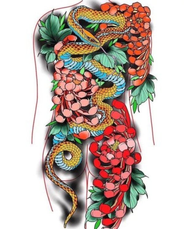 日式大板雾满背纹身手稿