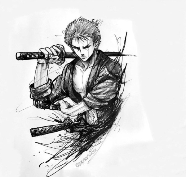 海贼王主题的9款路飞索隆等纹身手稿图片