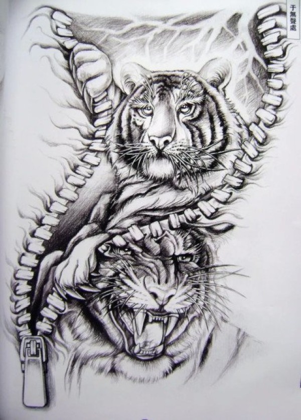 半甲唐狮手稿 传统的9款唐狮主题半甲纹身手稿图片