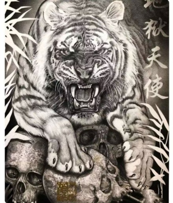 半甲唐狮手稿 传统的9款唐狮主题半甲纹身手稿图片
