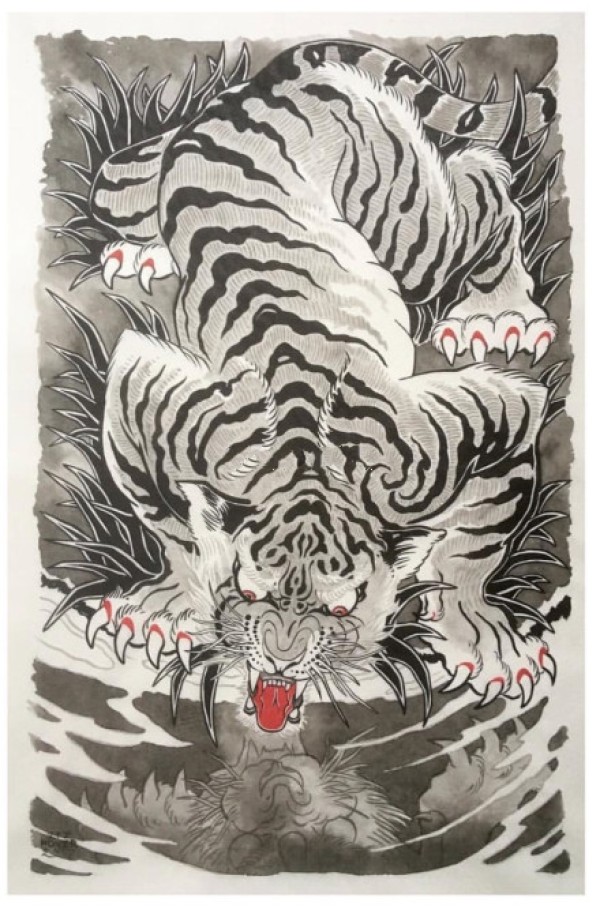 半甲唐狮手稿 传统的9款唐狮主题半甲纹身手稿图片
