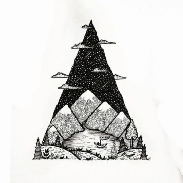 36张几何图形里的山水风景纹身手稿图案