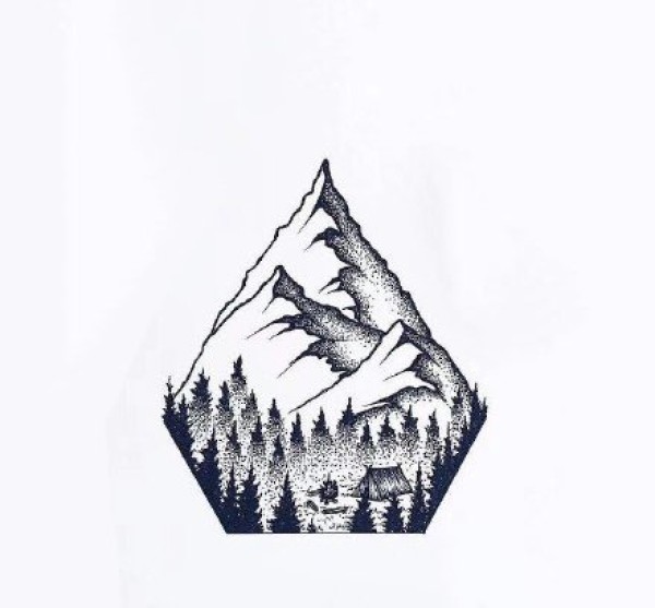 36张几何图形里的山水风景纹身手稿图案