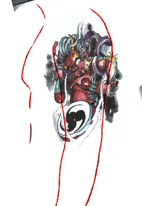 日式大板雾满背纹身手稿