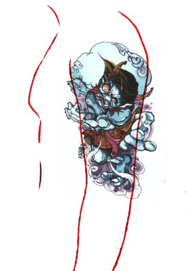 日式大板雾满背纹身手稿