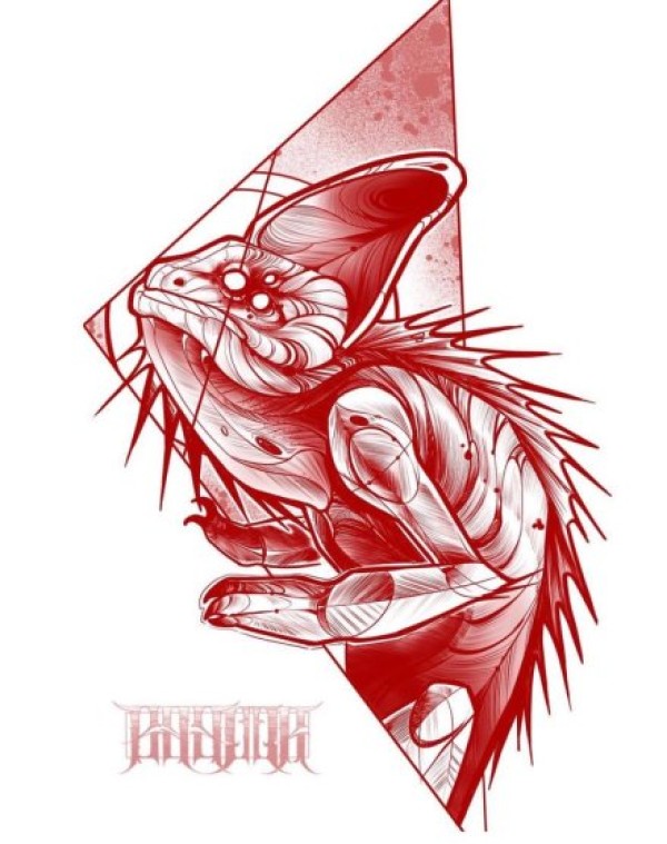 半甲唐狮手稿 传统的9款唐狮主题半甲纹身手稿图片