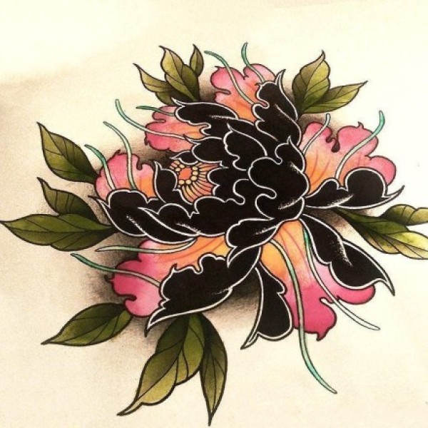 28张牡丹等传统花朵纹身手稿图案