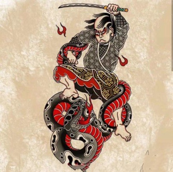 一组满背大气九龙拉棺纹身图案作品和手稿