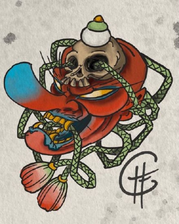 传统艺妓般若纹身图案手稿