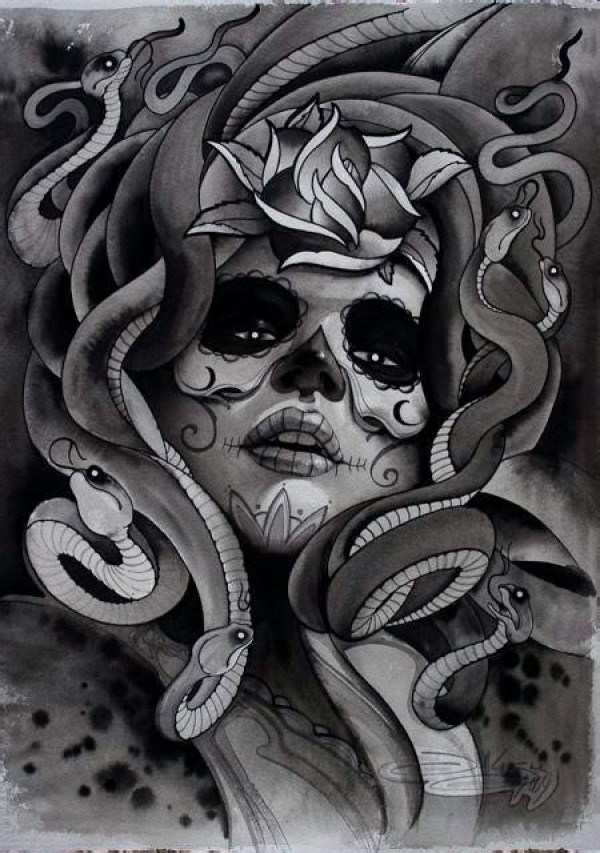 32组蛇发女郎美杜莎纹身手稿图案