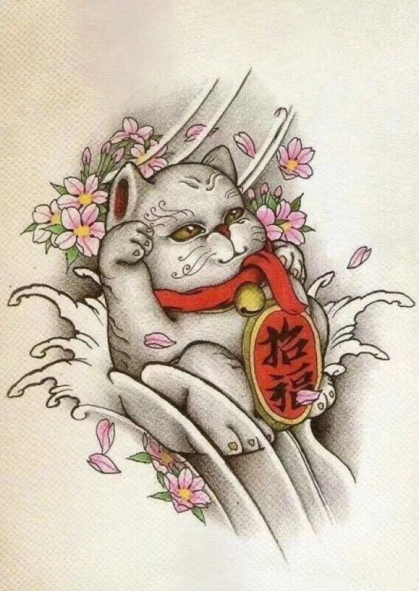 可爱的12张招财猫纹身手稿图片