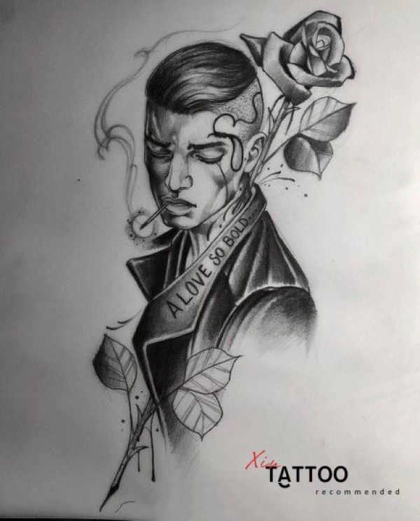 忧郁酷炫的男人头像纹身素材图