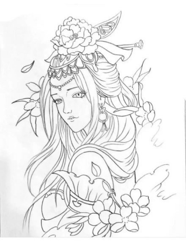 传统艺妓般若纹身图案手稿