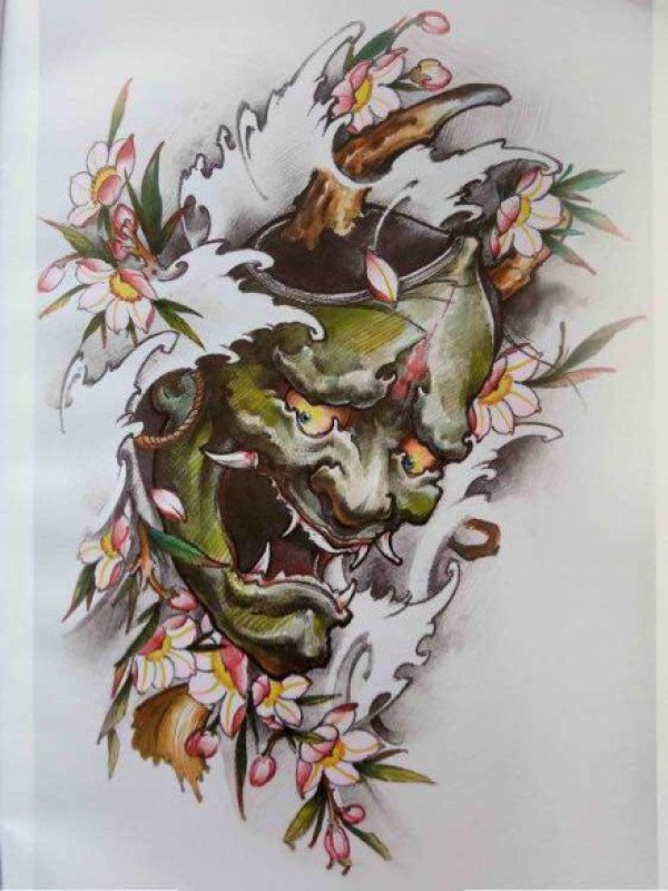 传统艺妓般若纹身图案手稿
