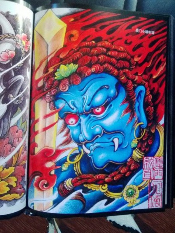 一组满背大气九龙拉棺纹身图案作品和手稿