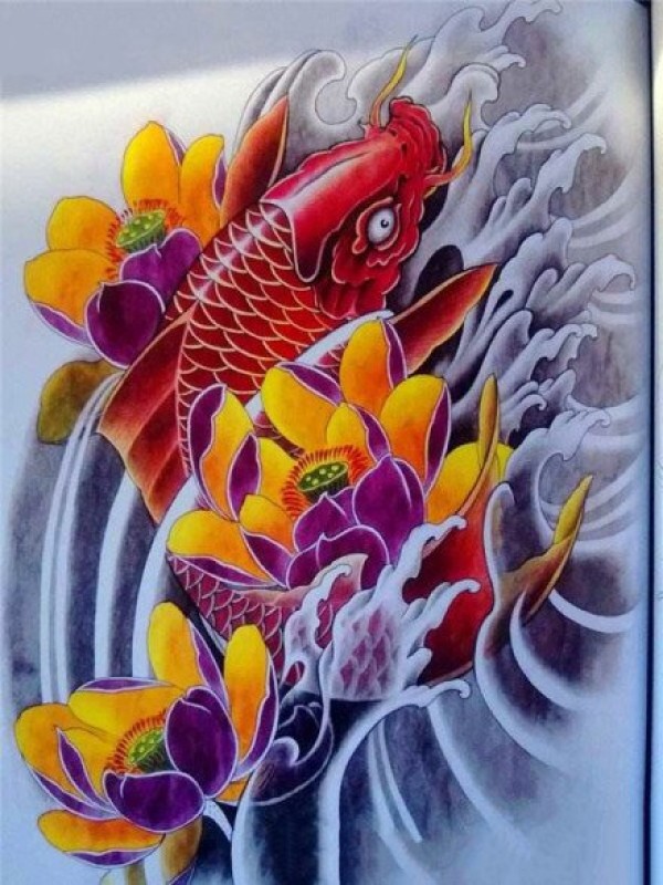 传统的30款鲤鱼纹身手稿图片赏析