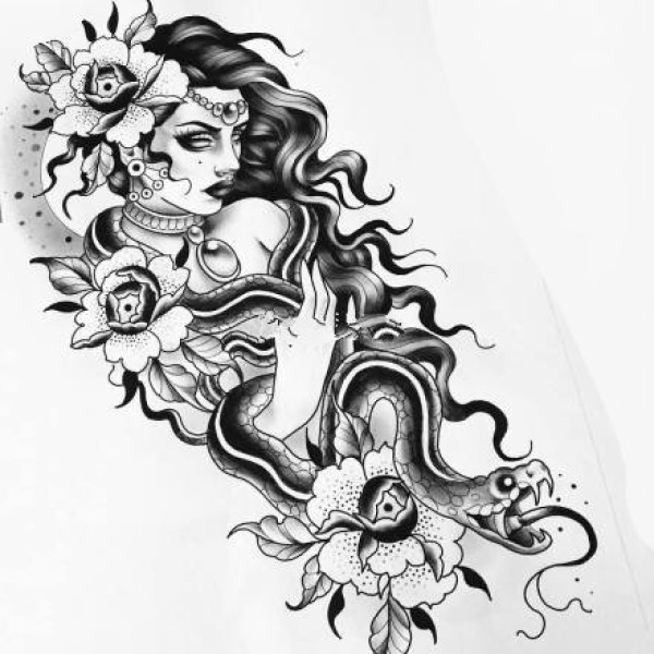 传统艺妓般若纹身图案手稿
