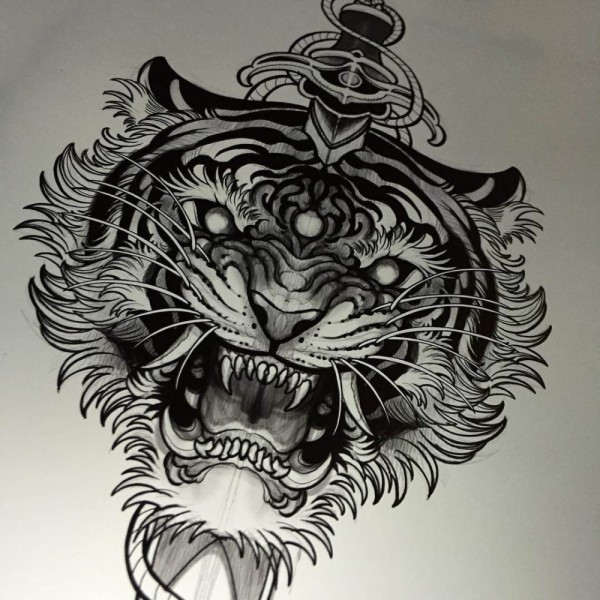 半甲唐狮手稿 传统的9款唐狮主题半甲纹身手稿图片