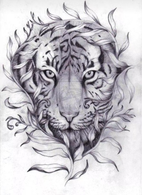 30组老虎头纹身手稿图案