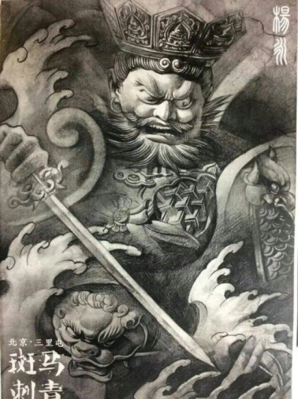 9张传统四大天王的纹身手稿图案