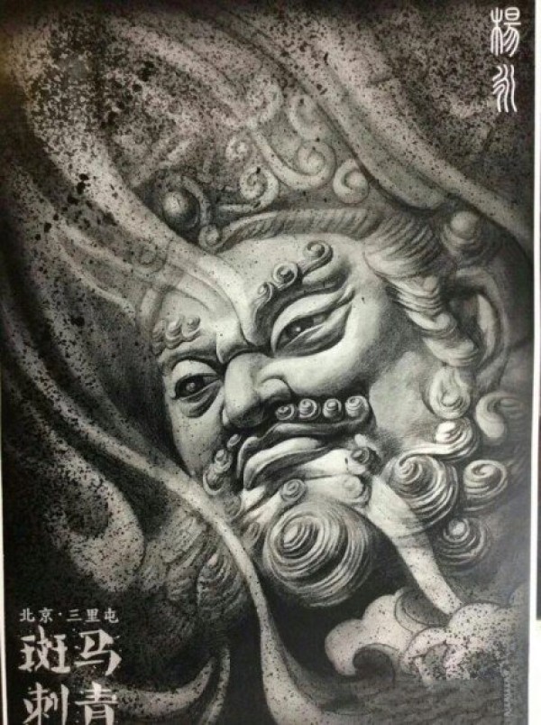 一组满背大气九龙拉棺纹身图案作品和手稿