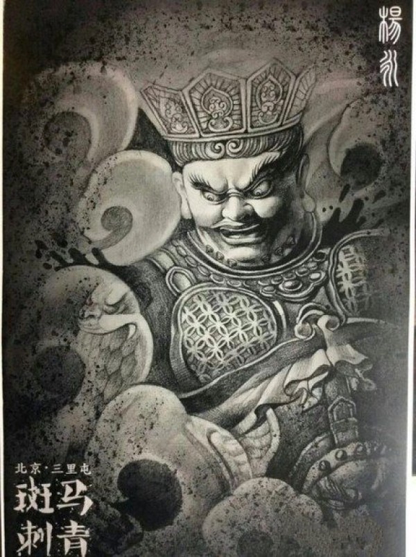 一组满背大气九龙拉棺纹身图案作品和手稿