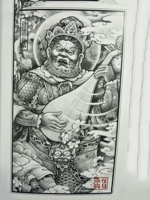 9张传统四大天王的纹身手稿图案
