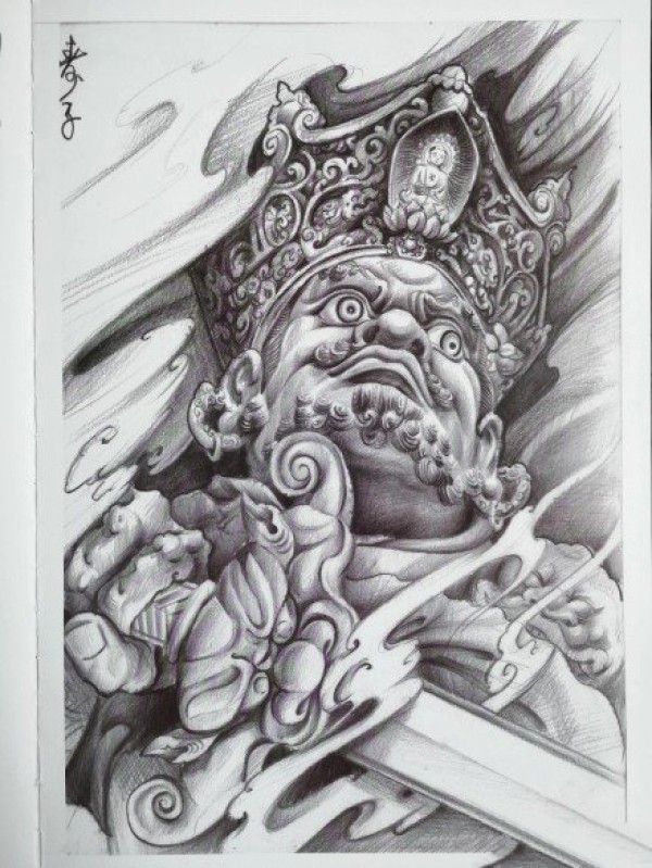 半甲唐狮手稿 传统的9款唐狮主题半甲纹身手稿图片
