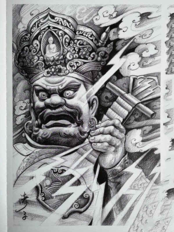 半甲唐狮手稿 传统的9款唐狮主题半甲纹身手稿图片