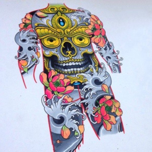 9张传统大满背的纹身手稿图案欣赏