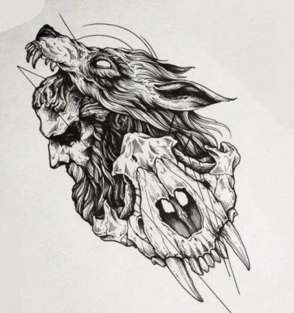 半甲唐狮手稿 传统的9款唐狮主题半甲纹身手稿图片