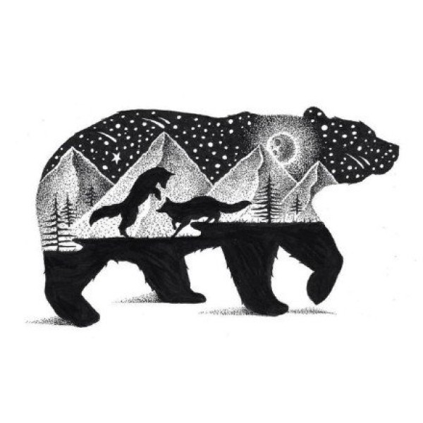 9张点刺星空和动物结合的黑色纹身手稿素材图案