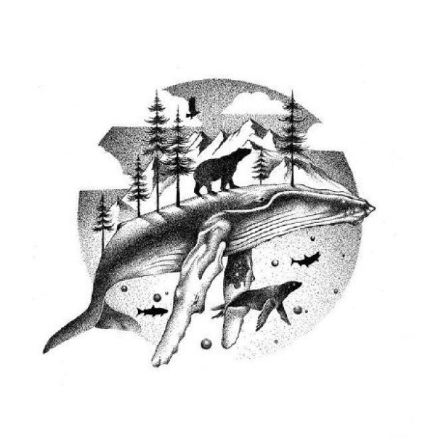 9张点刺星空和动物结合的黑色纹身手稿素材图案