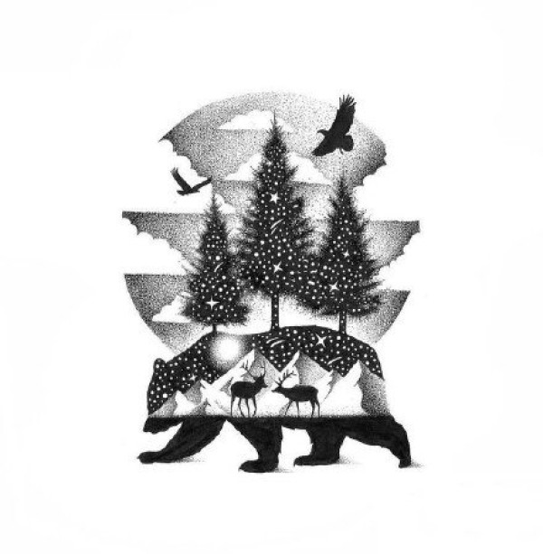 9张点刺星空和动物结合的黑色纹身手稿素材图案