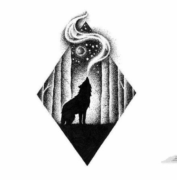 9张点刺星空和动物结合的黑色纹身手稿素材图案