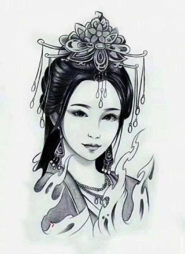 一组古代女子的人像纹身素材图片