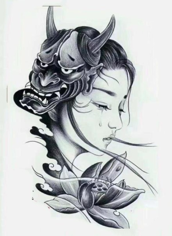 半甲唐狮手稿 传统的9款唐狮主题半甲纹身手稿图片