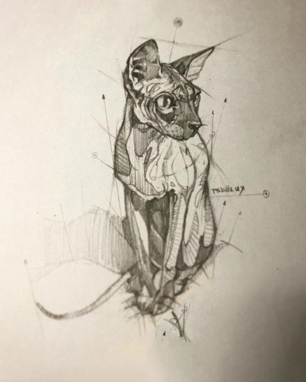 小清新猫头主题的一组猫神纹身素材手稿
