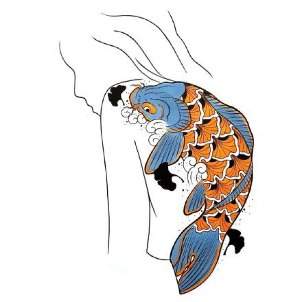 漂亮的一组新传统鲤鱼纹身手稿图片
