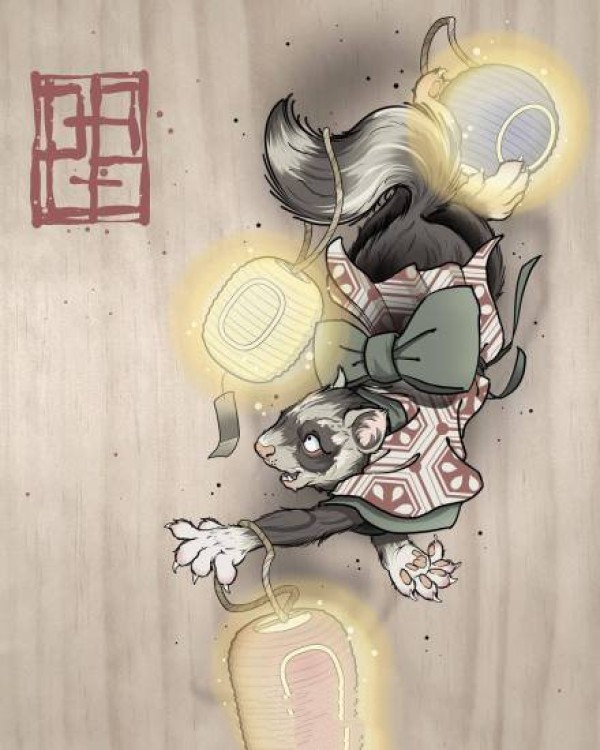 一组日本School风格的动物手稿