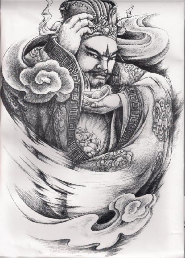 一组满背大气九龙拉棺纹身图案作品和手稿