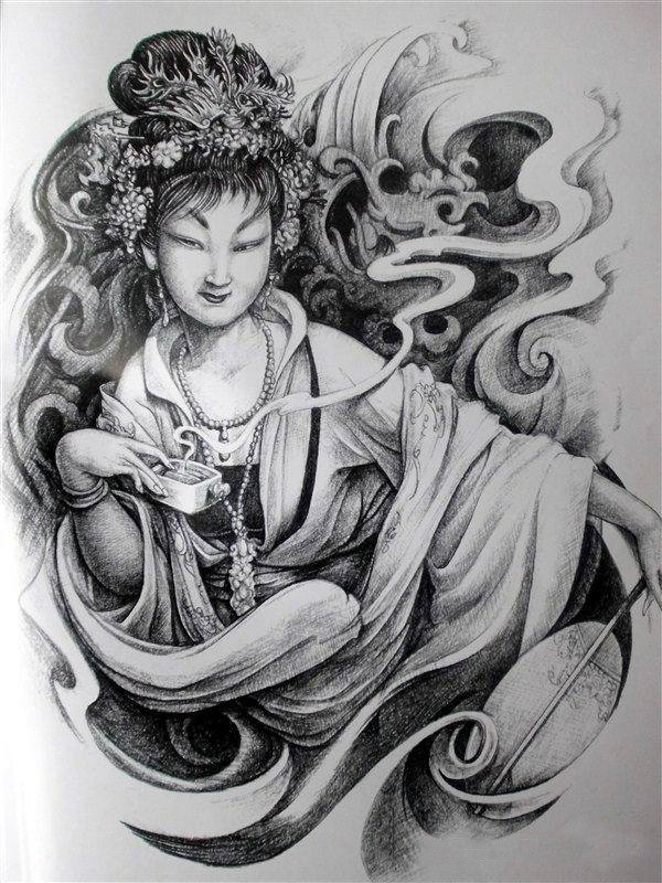 传统艺妓般若纹身图案手稿