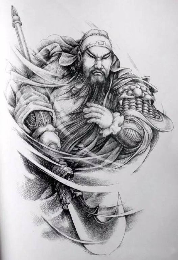 37组中国传统的关羽等人物纹身手稿图案