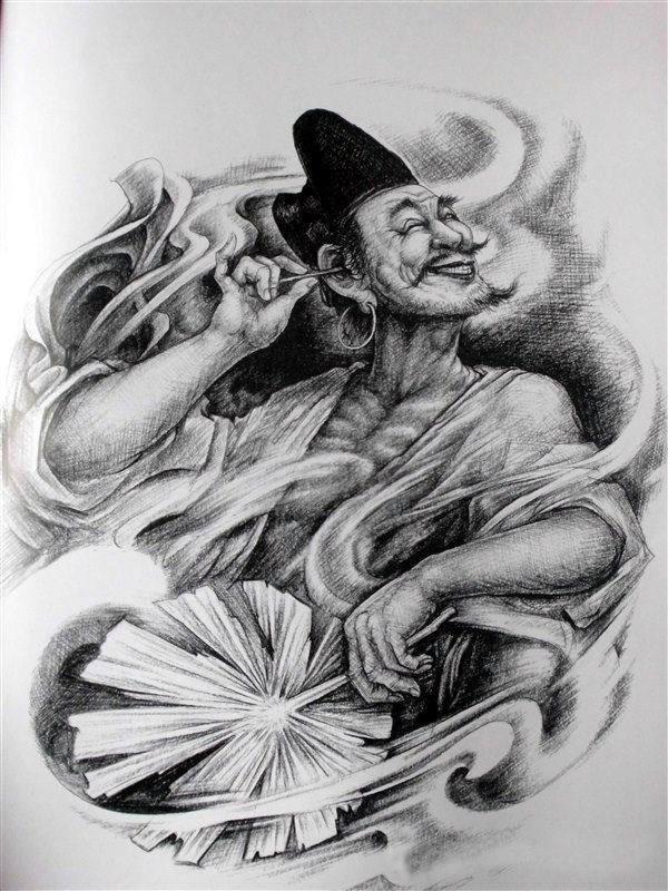 一组满背大气九龙拉棺纹身图案作品和手稿