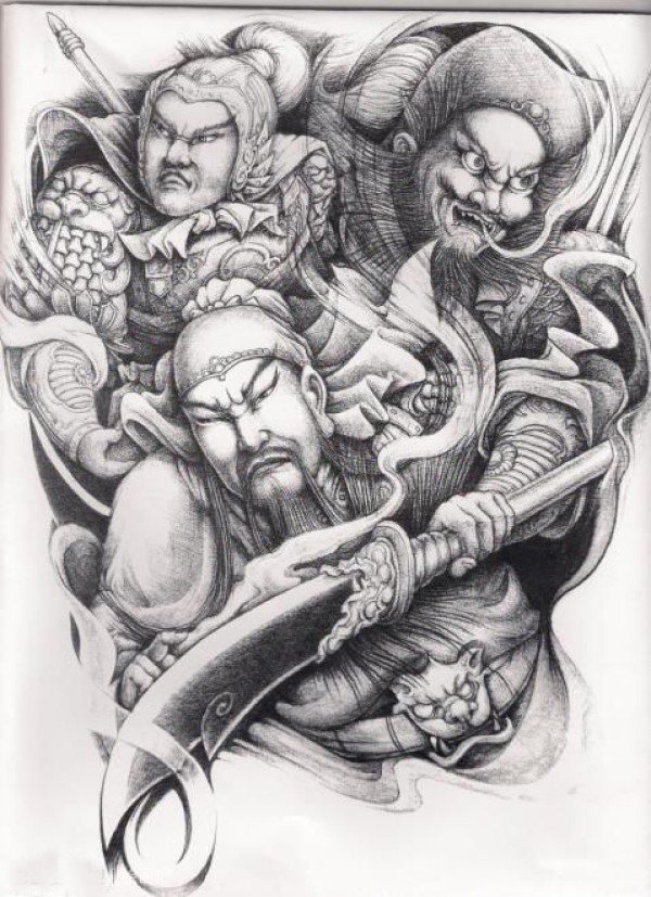 37组中国传统的关羽等人物纹身手稿图案