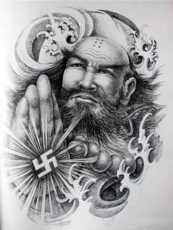 一组满背大气九龙拉棺纹身图案作品和手稿