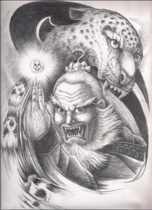 半甲唐狮手稿 传统的9款唐狮主题半甲纹身手稿图片