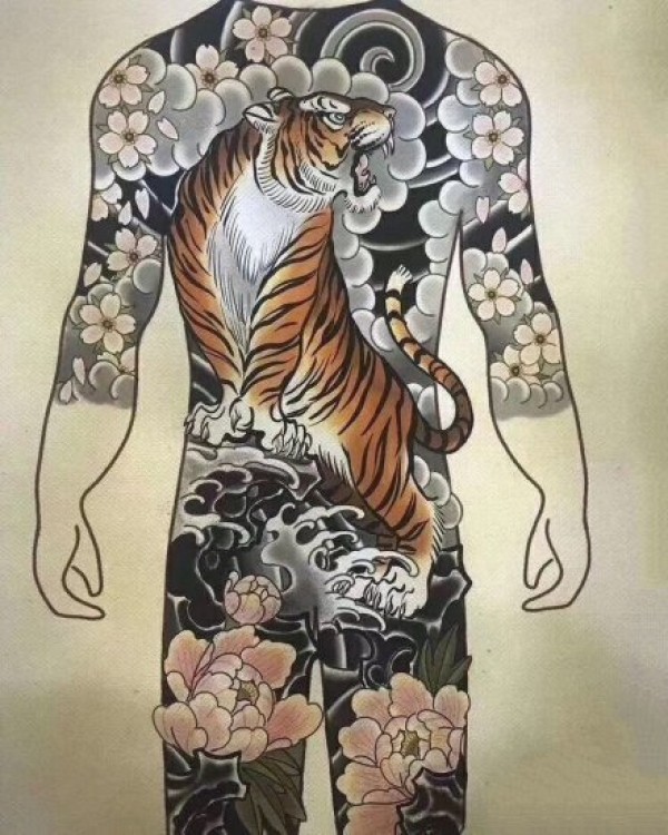 日式大板雾满背纹身手稿